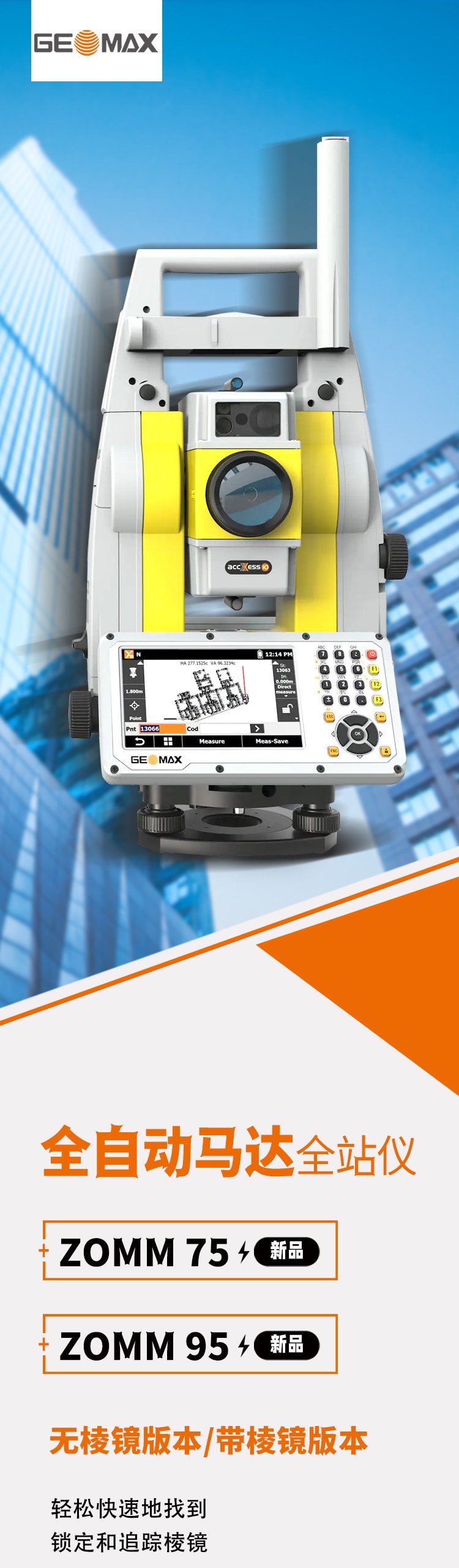 ZOOM75和ZOOM95是中緯在國內首發的高精度的全自動馬達全站儀,具有如下幾大特色: