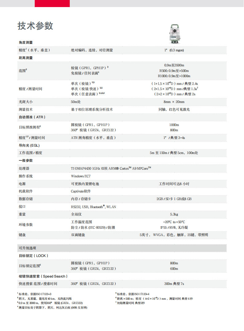 徠卡全站儀TS09plus全站儀微點測距技術(shù) 同軸設(shè)置的可見測距激光束,實現(xiàn)“指哪測哪 小光斑相位測量原理,有利于穿越鐵絲網(wǎng),以及準確測定墻角等特殊位置...