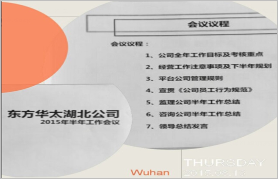 本次會議的主旨:一、總結公司上半年的工作,進一步明確公司乃至各部門的全年工作目標;二、宣貫公司平臺化后制定的部分制度、規章和規則;三、探討公司未來3至5年乃至更長遠的發展規劃及未來發展模式。